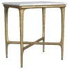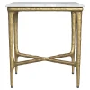 Elevate your living space with the refined elegance of this rectangular side table, where modern luxury meets sculptural design. A genuine white marble top rests on a striking, hand-hammered steel frame finished in a luxurious gold powder coat. The organic texture of the frame adds artistic intrigue, while its minimalist silhouette blends seamlessly with contemporary and eclectic interiors. Perfect for making a statement in any room, this fully assembled table combines both functionality and high-end design. Let this side table anchor your space with its sophisticated presence and durable craftsmanship.