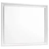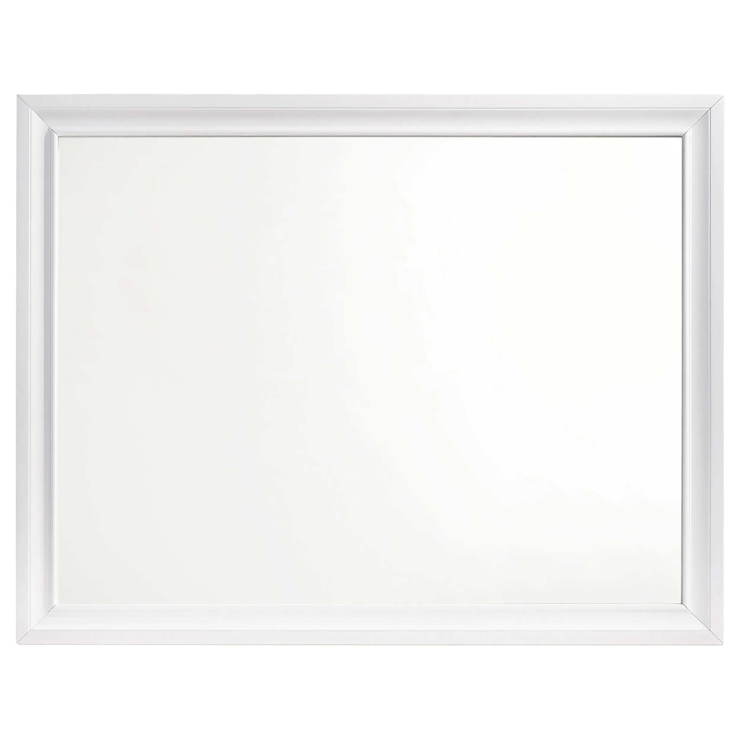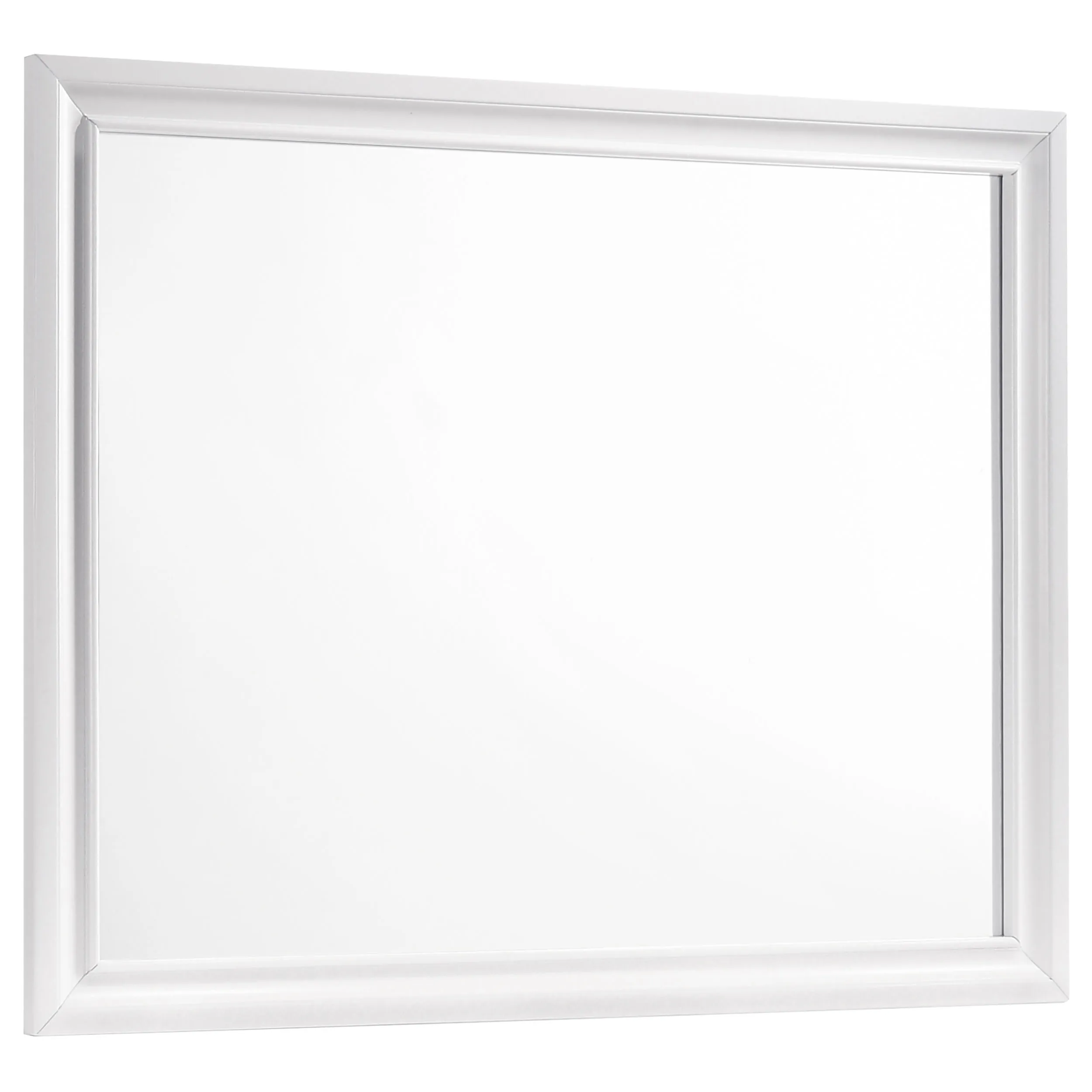 Balance out a bedroom with this gorgeous, rectangular mirror. Its wooden frame is beautifully beveled for a visually appealing appearance. A crisp, white finish gives it a light, airy look. Top-quality craftsmanship ensures maximum durability. Pair it with a matching dresser to bring any bedroom to life.