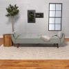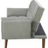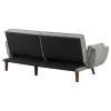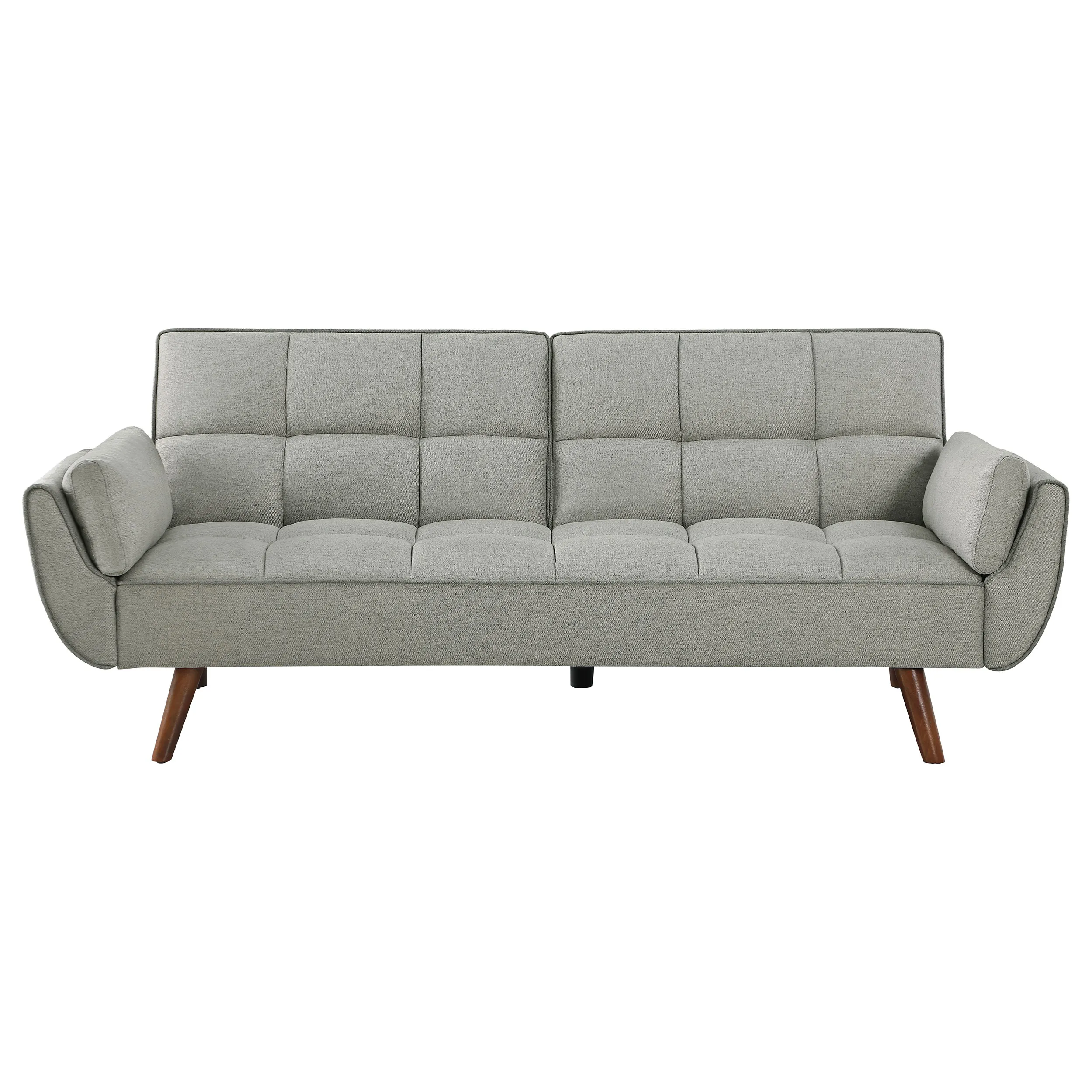 Elevate your space with our mid-century modern sofa beds. Upholstered in soft fabric, they offer plush cushioning with biscuit-tufted back and seat. The attached arm cushions enhance comfort. Easily converts from a sofa to a bed with a folding back. Durable construction and walnut-finished angular tapered legs add style and stability.