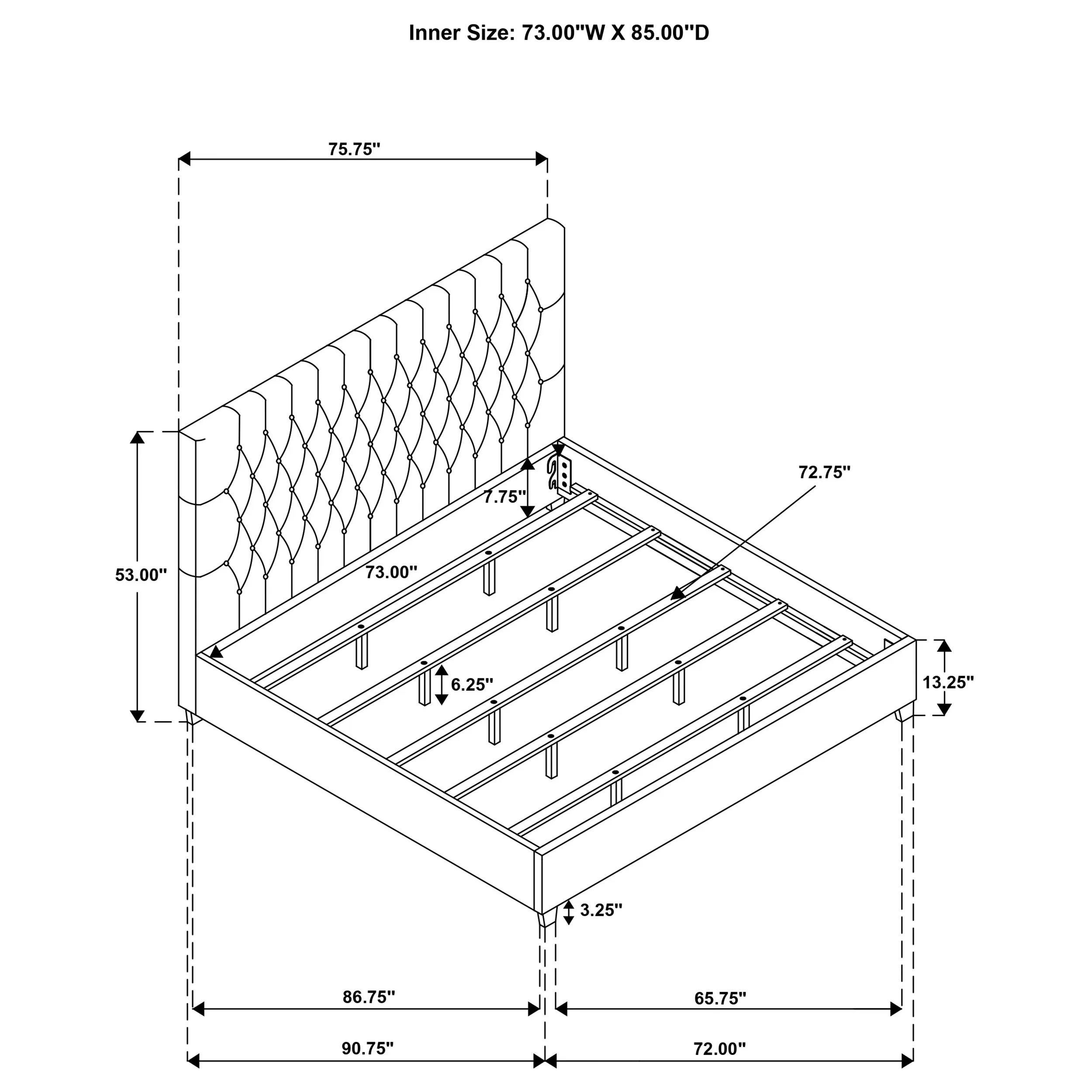 This low-slung bed combines elegant styling with a simple design that’s a gorgeous addition to the home. The high headboard has crisp lines and is beautifully accented with button tufting. No footboard gives this bed an open, appealing quality. The bed sit on short espresso legs that are a handsome complement to the bed design. This bed brings an understated timeless design to the bedroom.