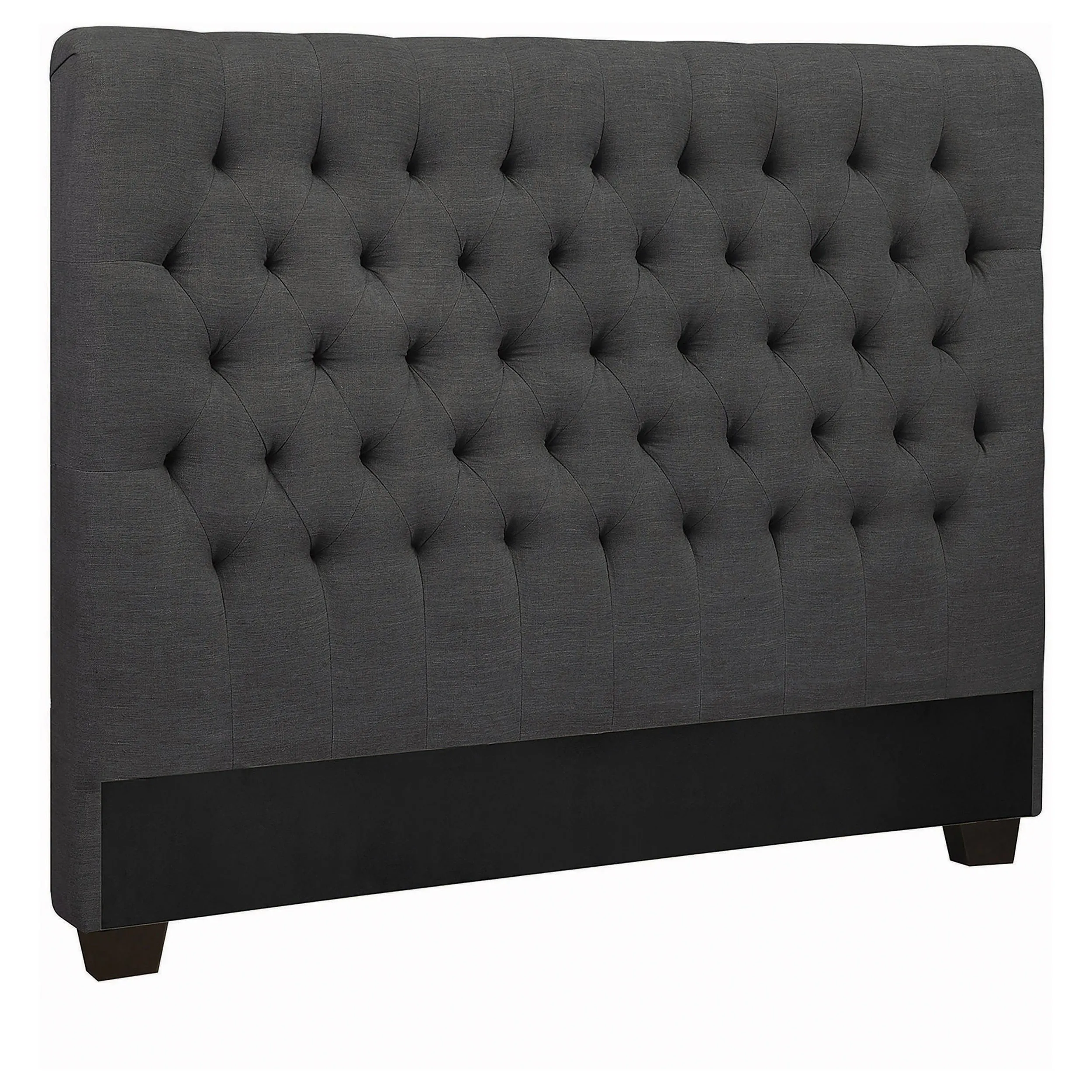 * Set includes: One (1) headboard * Materials: Birch and linen * Material Content: 40% rayon, 20% poly, 3% cotton, 37% linen * Fabric Color: Charcoal * Finish Color: Espresso * Assembly Required: Yes * Clean ability code: S * Tufted headboard * Bed frame required
