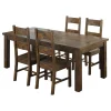 Add a bucolic ambiance to the dining room with this 5-piece dining set. It includes a rectangular table and four side chairs, all with clean, crisp lines. The chair seat backs are constructed with two wide slats that evoke the countryside. The table is wide and long, and it is sturdily fashioned with thick legs. This set is ideal for a home with an overall rustic design.