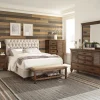 * Upholstery: Beige fabric * Leg finish: Cappuccino * Nailhead finish: Bronze * Box spring: Required * Tested static weight: 600 lbs. * Assembly required: Yes