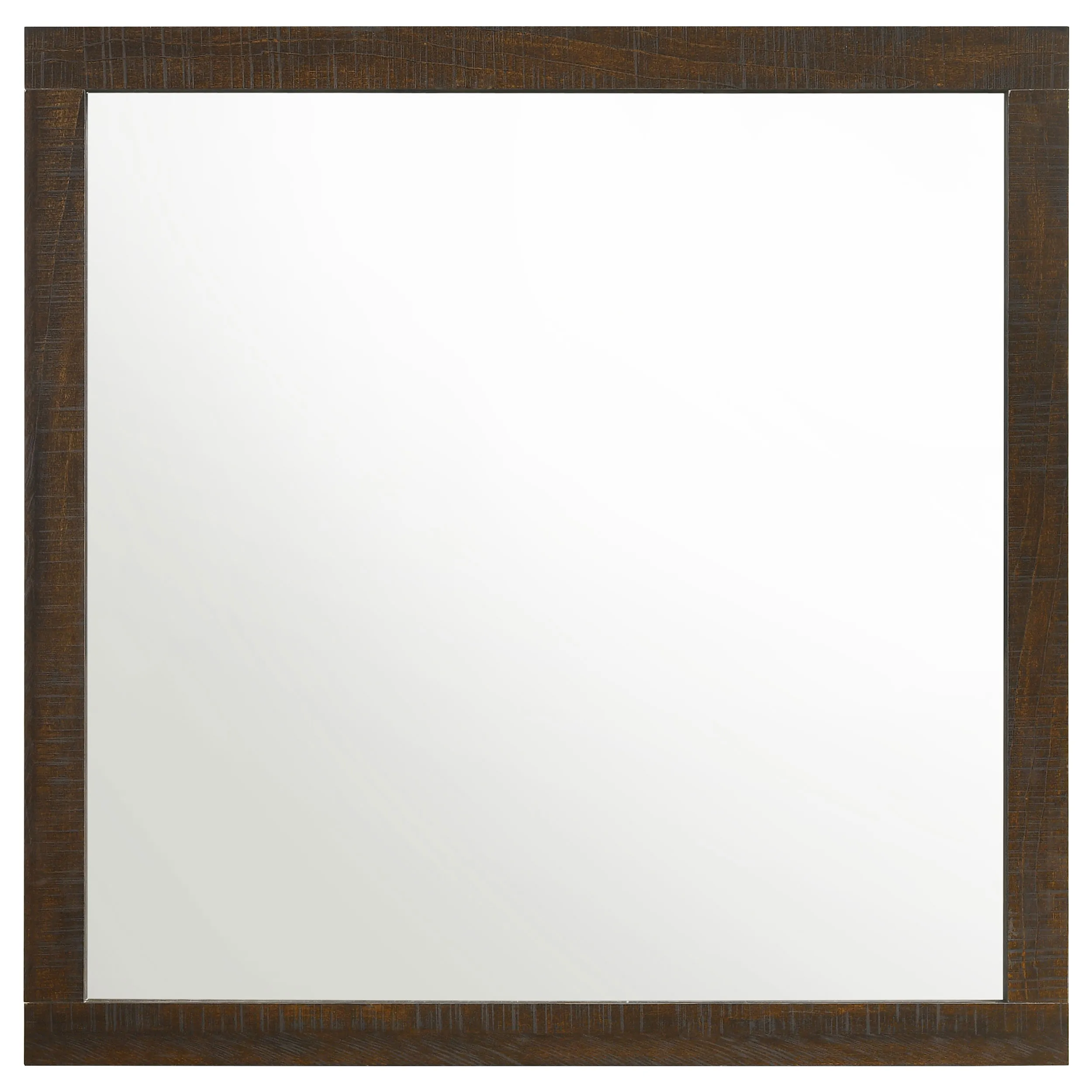This sophisticated five-piece bedroom set creates a cool, classy aesthetic in any modern home. Its stylish design combines rustic wood with metal accents for a bold, mixed-media look. Clean, straight lines give each piece a pleasingly crisp silhouette. Beautiful shades of tobacco and bronze complete its stunning appearance. Complete with a bed, dresser, mirror, nightstand, and chest, this versatile set is endlessly appealing.