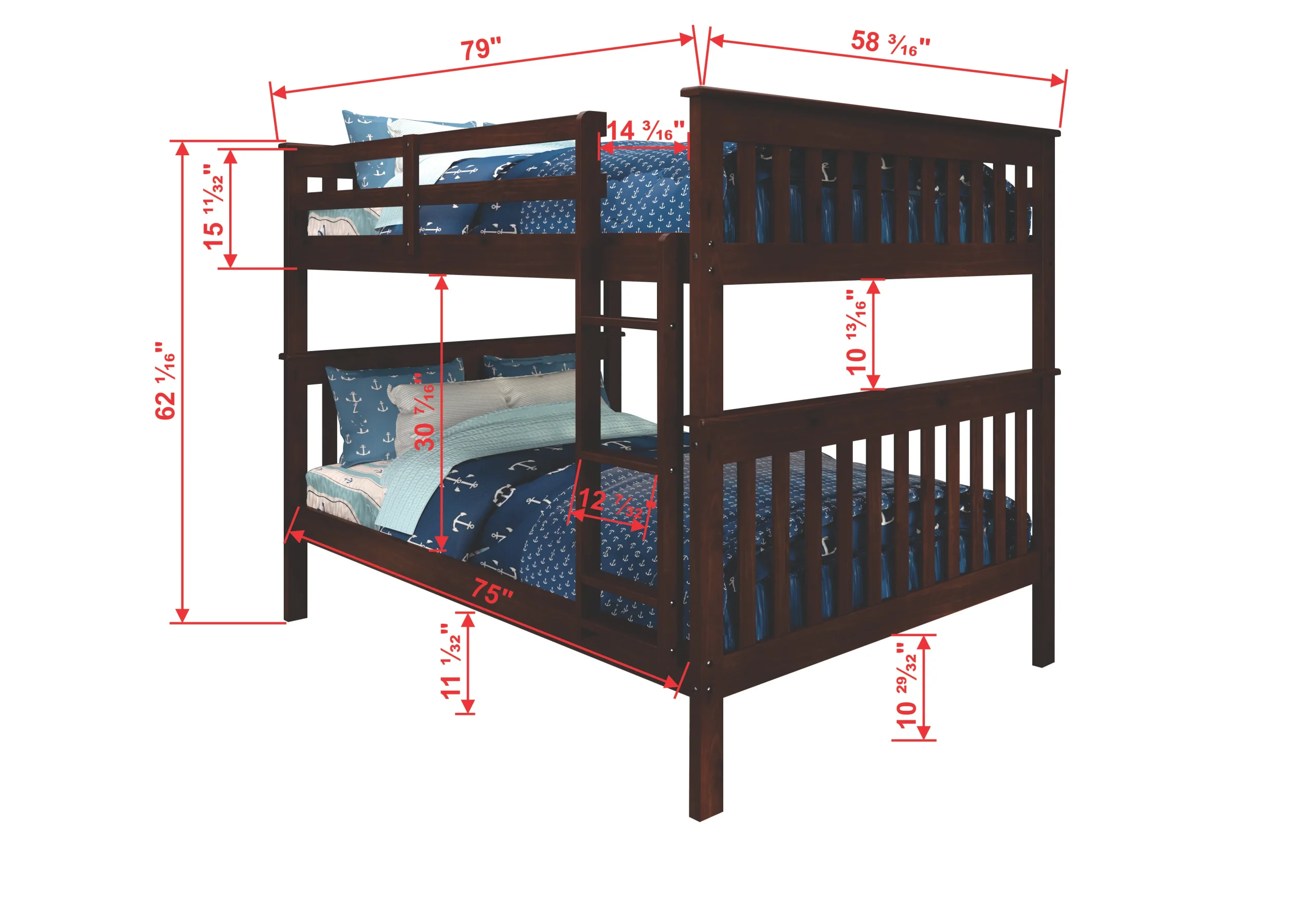 Elevate your child’s bedroom with our Full Over Full Mission Style Bunk Bed in a rich Cappuccino finish. At Donco Kids, we understand the importance of creating a cozy haven for your little ones. This bunk bed, designed with family values in mind, not only adds warmth but also offers practicality. With a built-in mattress ready slat system, there’s no need for a Bunkie board or box springs, ensuring your child’s comfort. Invest in quality, style, and functionality for your family with Donco Kids, where we craft furniture that tells your family’s story.