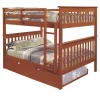 Transform bedtime into a cherished adventure with our Donco Kids Mission Full over Full Bunk Bed in captivating Light Espresso. Crafted with love and expertise, this enchanting piece brings warmth to your child’s haven. The Mission-style design exudes timeless elegance, while the twin trundle ensures sleepovers are always welcome. No more clutter under the bedâ€â€just cozy, clutter-free memories. Embrace the magic of family nights and whispered secrets, where dreams unfold on sturdy, mattress-ready slats.