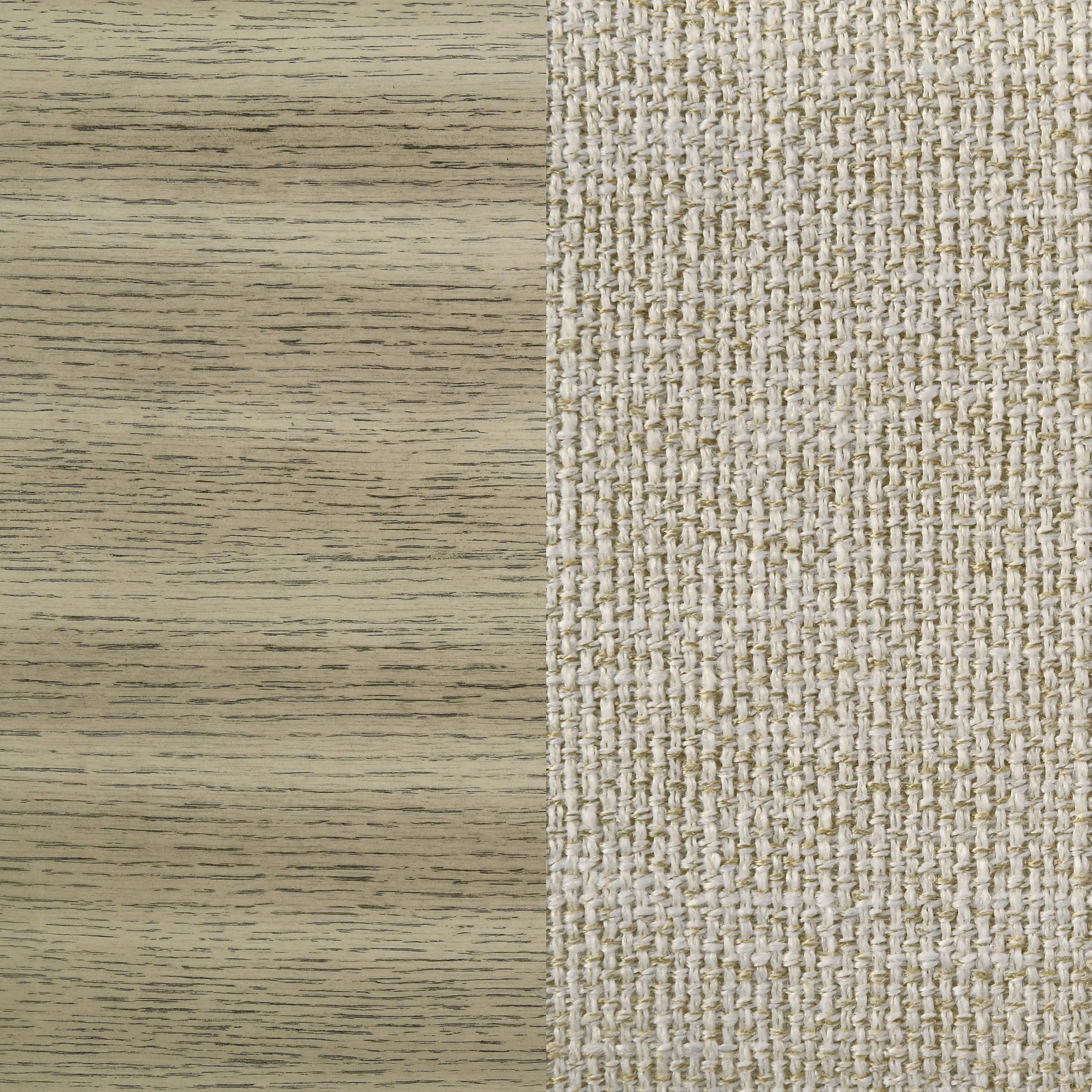 Center your inviting bedroom on a modern wooden bed. Its upholstered headboard assures welcoming indulgence, with beige fabric and channel tufting that creates comfort while lounging or relaxing. The bed is built with a wooden frame and features a rustic beige wood grain finish over its low footboard and rails. Stylish trim work adds depth the head and footboards, offering a dimensional touch in your bedroom. Pair this lovely bed with neutral linens and wood furniture for a chic but relaxed atmosphere.
