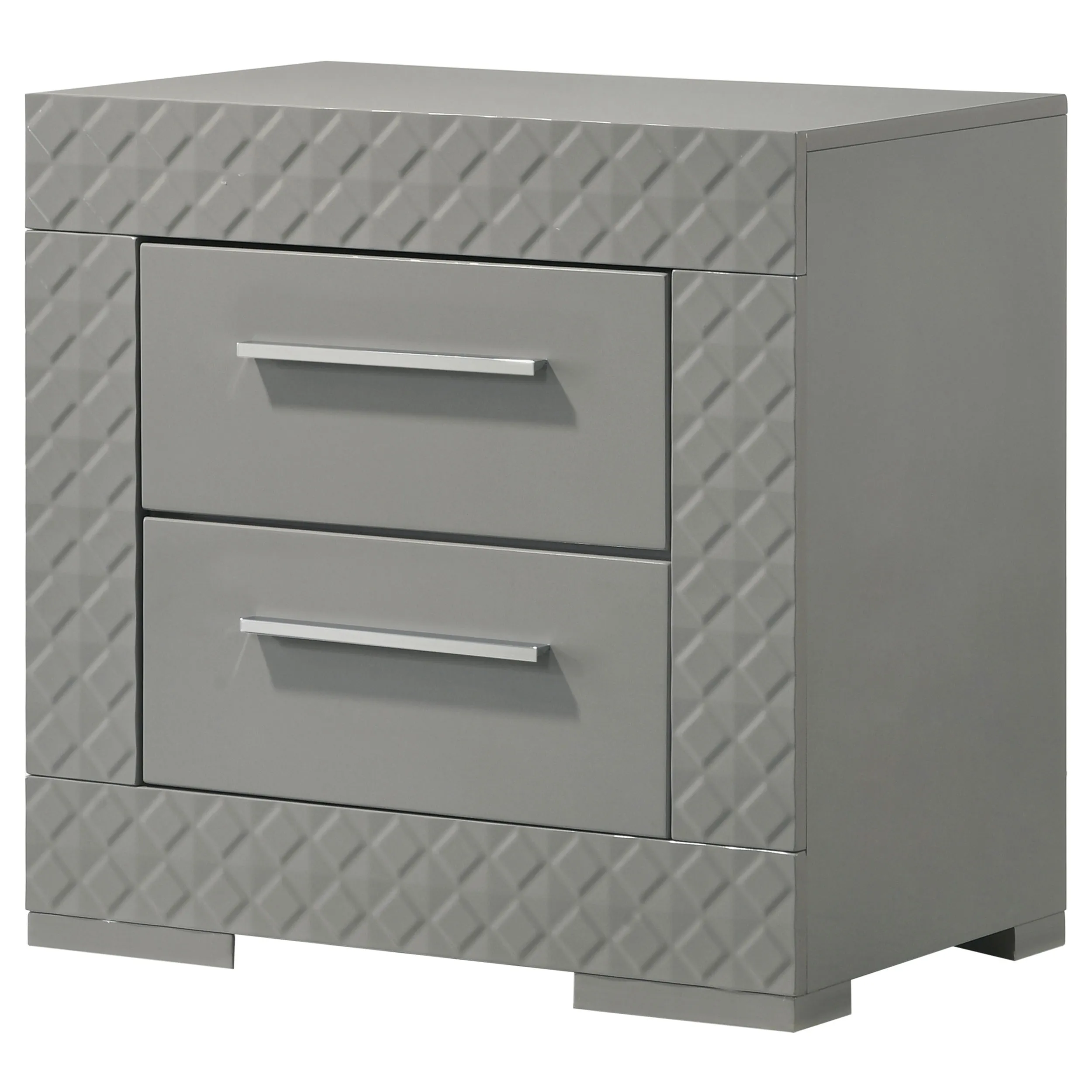 Ives 2-drawer Nightstand Bedside Table Grey High Gloss