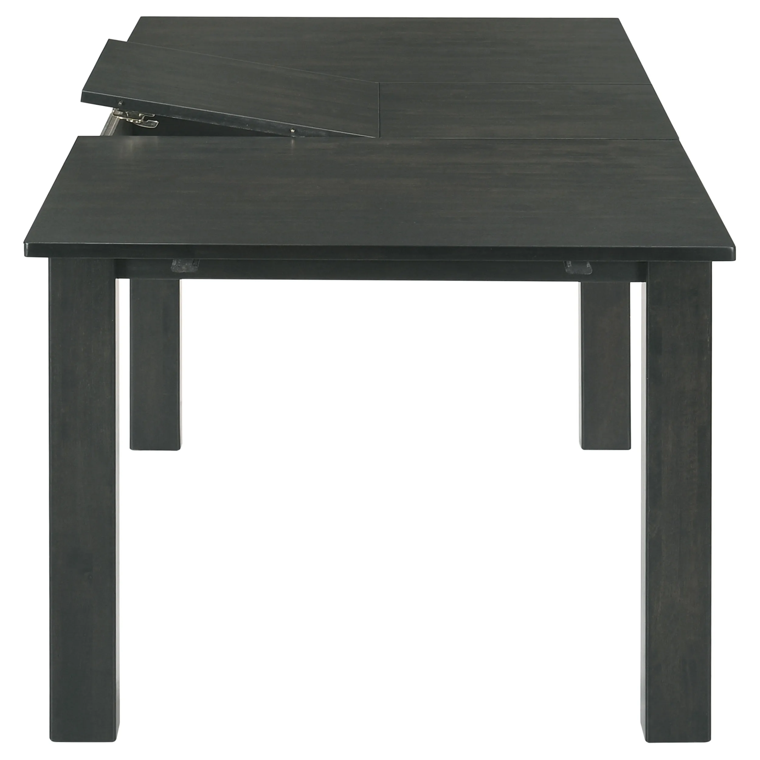 Allow this transitional dining table into a space to create a focal point. A rectangular tabletop offers ample space for serving up meals and having a study session with kids. With an extra 20-inch self-storing butterfly leaf, this dining table extends to host larger gatherings. Its deep black stain finish invites you to decorate a tablescape in bold hues or create a neutral color palette for a modern farmhouse style space. In addition, block style legs offer visual weight and extra stability.