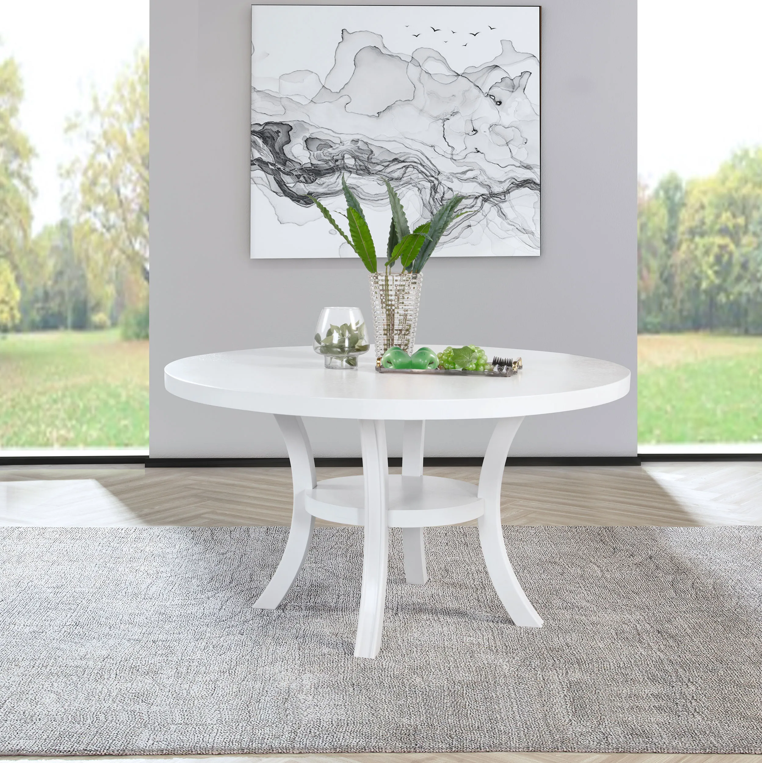 Judd 54-inch Round Dining Wood Table with Shelf Pearl White