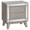 * Finish: Metallic mercury * Foundation required * Metal extension drawer glides * French front, English back dovetail