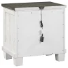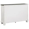 This rustic farmhouse bedroom collection is crafted with a focus on quality construction, including rustic distressed veneer and exposed gunmetal bolts, and features felt-lined top drawers. The collection embodies the charming details of farmhouse style and will add a touch of warmth and character to any bedroom.