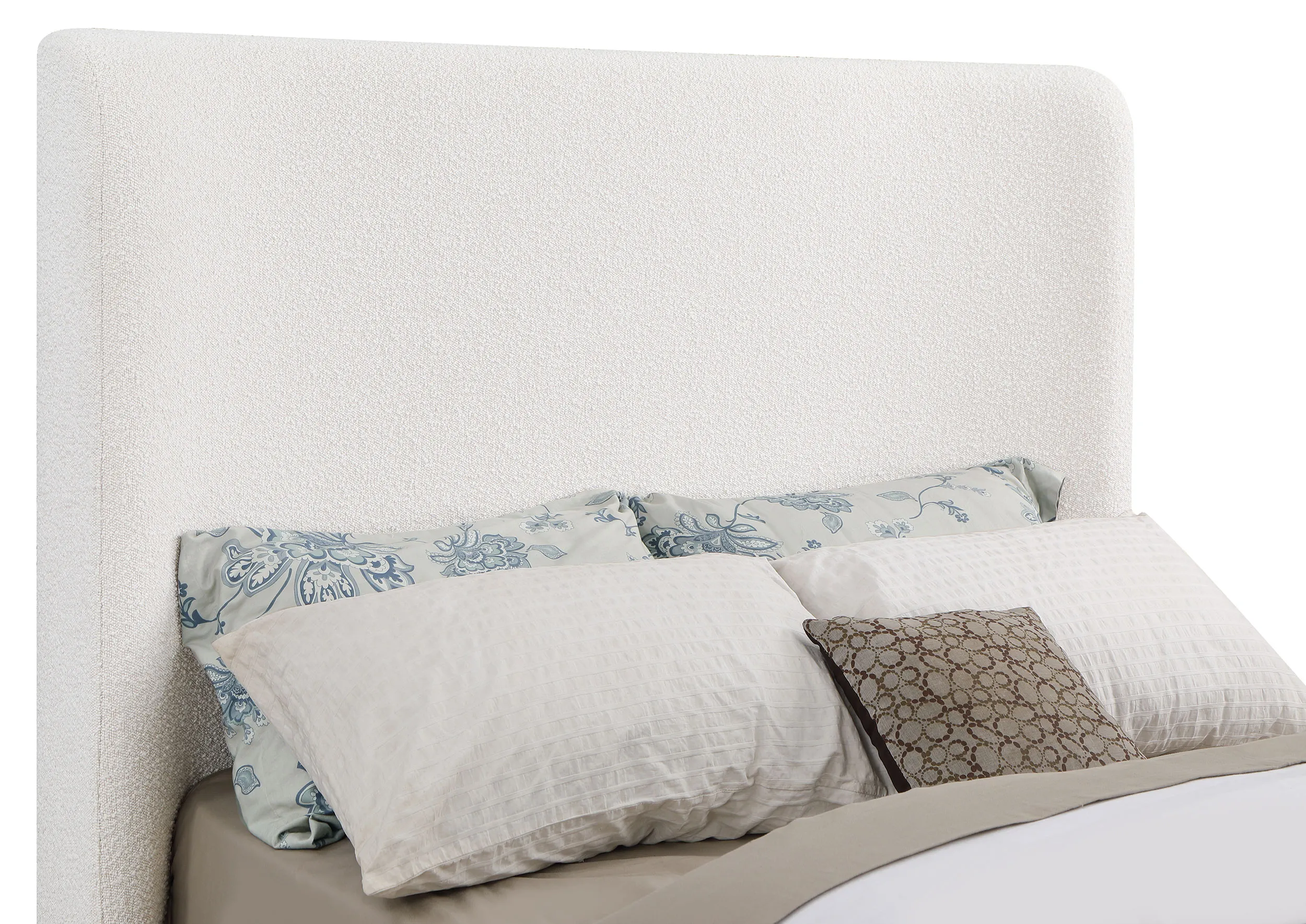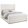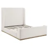 Straddling the line between modern and farmhouse, the Nala upholstered bed is a stunning centerpiece for a refined but inviting bedroom space. Its tall profile features a wingback headboard and matching low footboard, with rails that extend to the floor for a clean, grounded presentation. The airy silhouette is a perfect solution in a modern space, or one that’s short on space. Plush foam padding is wrapped in cream fabric upholstery that’s soft and welcoming, delivering on-trend boucle-inspired texture. The bed provides excellent support with wooden slats and support legs at the center that create the stability needed for a great night’s sleep.