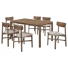 Elevate your dining space with the perfect combination of minimalist style and everyday comfort. This dining set pairs a beautifully crafted rectangular dining table with matching chairs, each constructed with solid wood and finished in a trendy tone cohesive to any room setting. The dining table offers a sturdy, spacious surface for meals, gatherings, or even work-from-home setups. Each chair features a padded foam seat upholstered in tan fabric, providing both style and comfort, while the simple yet elegant design of the set complements a variety of interior styles, from modern to transitional.