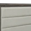 Create your ideal bedroom ambiance with the fresh, casual style of this transitional bedroom set. It features engineered wood construction with durable laminate surfaces, creating a stylish look with its brown oak wood grain finish. The set is clean lined, delivering a tall, squared headboard with foam padding and tan upholstery, creating the perfect place for lounging and reclining. The bed is complete with a low footboard and rails, offering a complete look that remains open and airy, great in small and large bedrooms alike. Storage pieces add ample drawer space and roomy tops, perfect for creating organization and offering a place for a personal touch of decor.
